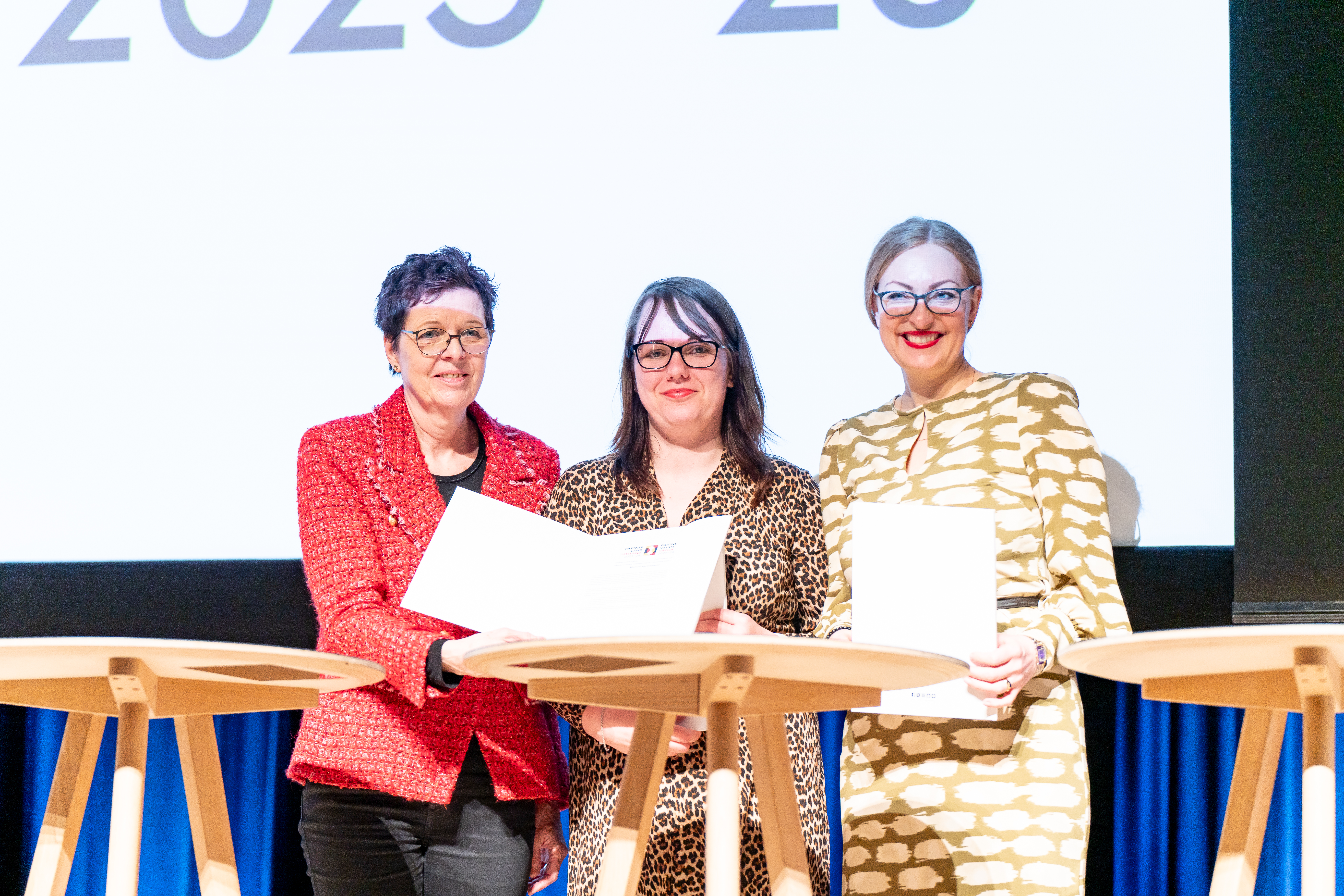 BID prezidente Sabīne Homiliusa (Sabine Homilius), LBB priekšēdētāja Rūta Bokta, LNB direktore Dagnija Baltiņa (Foto Valters Lācis) Next Attachment