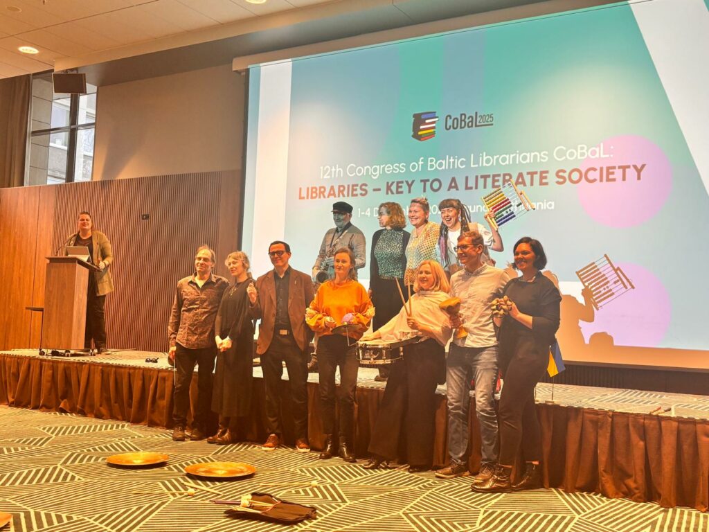 2025. gada 1.–4. decembrī Solvita Štekerhofa kopā ar Aiju Jankavu, Aivu Avotu-Zalsteri un LNB kolēģēm Eviju Vjateri, Anitu Veckalni devās uz Kauņu, kur norisinājās Baltijas bibliotekāru kongress – pasākums, kas reizi piecos gados pulcē bibliotekārus no visas Baltijas jūras reģiona. Šogad kongresā piedalījās ne tikai Baltijas valstu bibliotekāri, bet arī kongresa dalībnieku vidū bija arī kolēģi no Norvēģijas, Zviedrijas, Somijas un Ukrainas. Atklāšanas runas un konferences zāles “Alfa” lasījumi skatāmi šeit: https://www.youtube.com/watch?v=CHK7whGCx3A&t=773s
