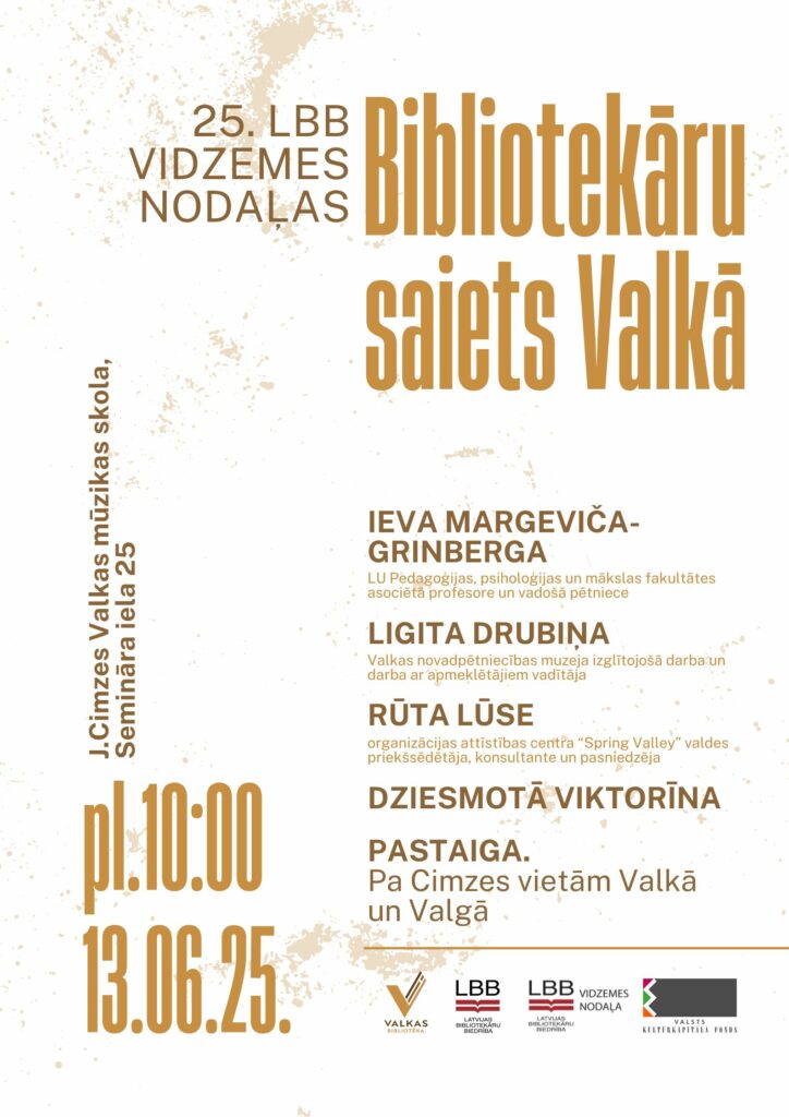Latvijas Bibliotekāru biedrības (LBB) Vidzemes nodaļas 25. saiets šogad notiks robežpilsētā Valkā 13. jūnijā. Sadarbībā ar Valkas novada Centrālo bibliotēku sagatavota daudzpusīga pasākuma programma gan zināšanu papildināšanai, gan izklaidei un saturīgai laika pavadīšanai kolēģu pulkā.